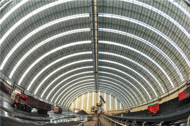 堆场料场封闭式主体结构为新型的钢宿迁网架结构,维修结构为宿迁钢结构宿迁不锈钢板和纤维增强塑料灯具,其外形以宿迁网架式和平板为主,连接柱宿迁施工自由,设置喷雾自动喷水系统,从而可以实现棚内所有物料的覆盖,减少物料在运输过程中的损耗,起到防尘的作用,减少工厂关闭后的二氧化硫排放量,50mg/m3颗粒排放量小于10mg/m3,非常适合低能耗。低闭库自动感应反应对库存轮胎进行清洁,确保轮胎不受道路污染;封闭的储存区可从源头控制粉尘污染,控制无序排放。
